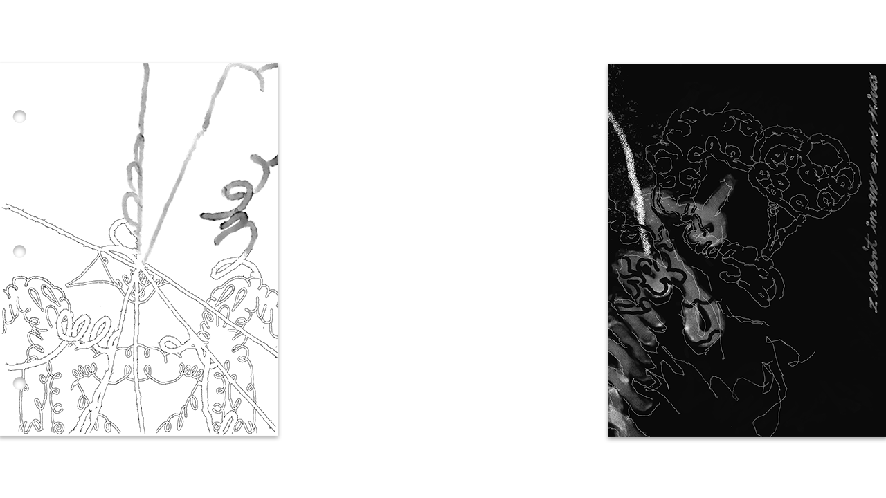 Páginas sueltas y perdidas parte de ningún cuaderno de bocetos o serie listas para ser publicadas o descartadas. Extraídas del universo de "Me estoy buscando en vos" y sin ningún destino. Cortar la piel con el filo de la hoja y mirar através. Tinta Estilográfica en papel escolar perforado (21 x 29.7 cm).