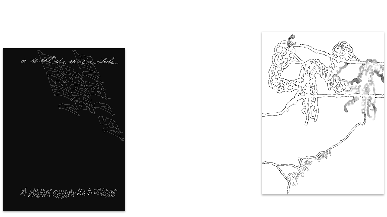 Lost and loose pages being part of no sketchbook or serie. Ready to be published or discarded. Extracted from "Looking for myself in you" universe and with no aim. To cut the skin with the edge of the paper and see through. Fountain pen ink and Watercolor on b/n Folder School Paper 180 gsm (21 x 29.7 cm).